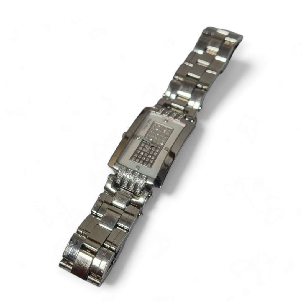 Tarcza zegarka w kolorze srebrnym prezentuje się niezwykle elegancko i czytelnie. Kontrastowe indeksy i wskazówki dodają mu nowoczesnego charakteru, a datownik umieszczony na godzinie 3 pozwala na szybkie sprawdzenie aktualnej daty.